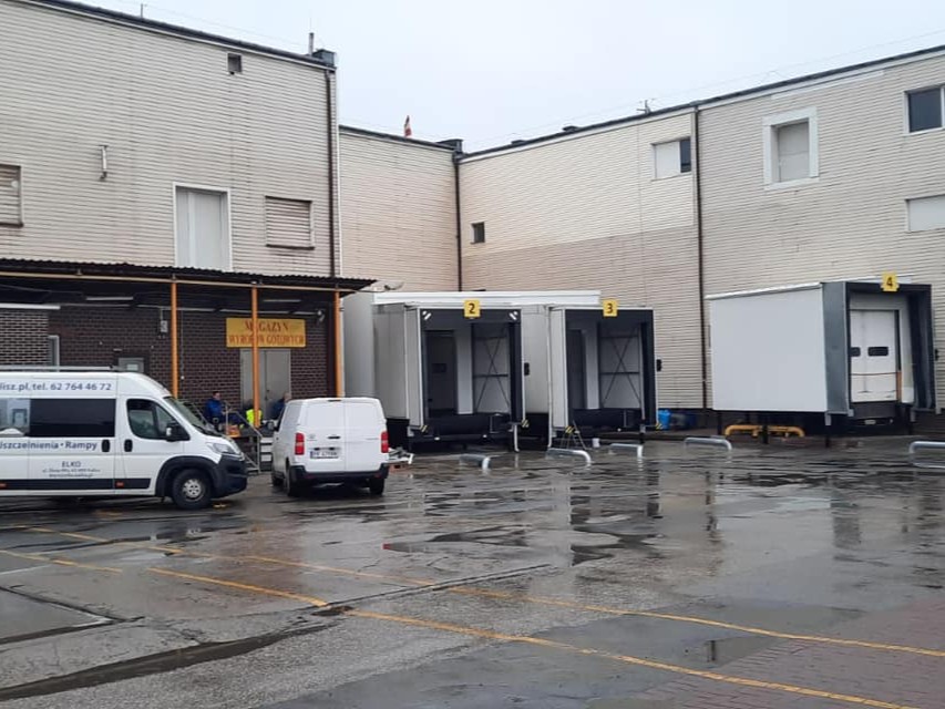 Demontaż i przeniesienie starych domków przeładunkowych, budowa nowych domków przeładunkowych z rampami i uszczelnieniami pneumatycznymi. Prace wykonane przez firmę ELKO bez zatrzymania przeładunków u Zleceniodawcy firmy SUPERDROB.